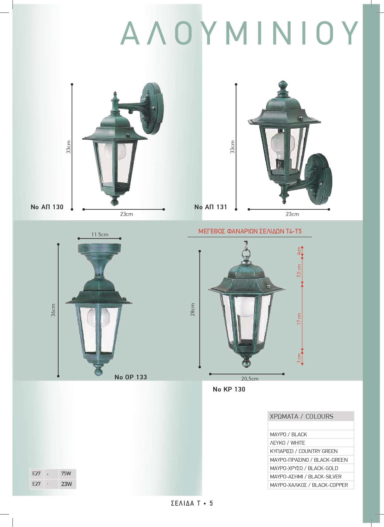 Φωτιστικά βαρέος τύπου μασίφ αλουμινίου. Η πρώτη ύλη είναι εισαγωγής διεθνούς Ιταλικού οίκου και στο εργαστήριο μας γίνεται η επεξεργασία, η απολάδωση, το φινίρισμα, το βάψιμο με ηλεκτροστατική βαφή, σε απόχρωση μαύρο ματ σαγρέ, ή αποχρώσεις πατίνας αντικέ (βλέπε χρωματολόγιο).