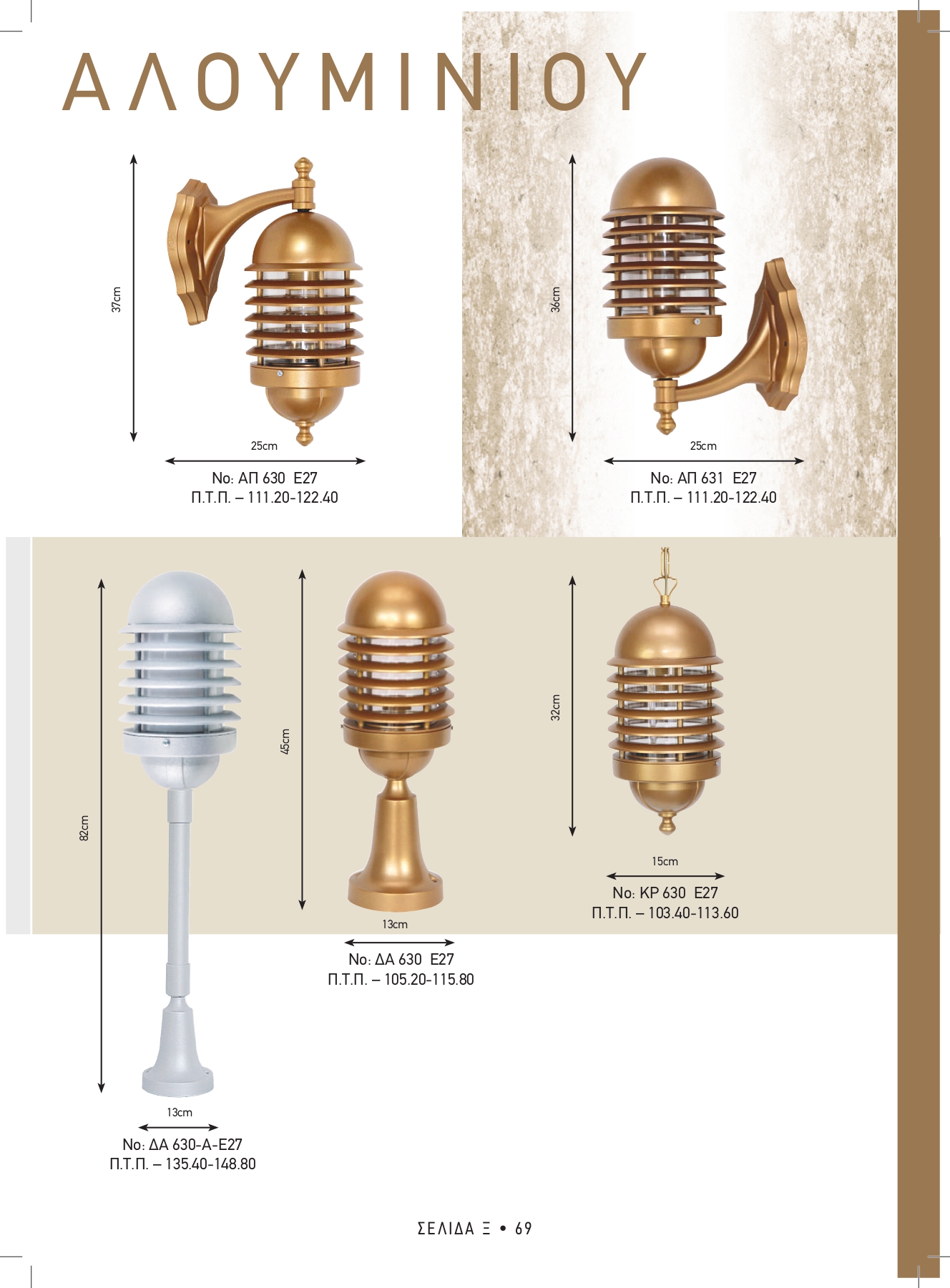 Φωτιστικά βαρέος τύπου μασίφ αλουμινίου. Η πρώτη ύλη είναι εισαγωγής διεθνούς Ιταλικού οίκου και στο εργαστήριο μας γίνεται η επεξεργασία, η απολάδωση, το φινίρισμα, το βάψιμο με ηλεκτροστατική βαφή, σε απόχρωση μαύρο ματ σαγρέ, ή αποχρώσεις πατίνας αντικέ (βλέπε χρωματολόγιο).