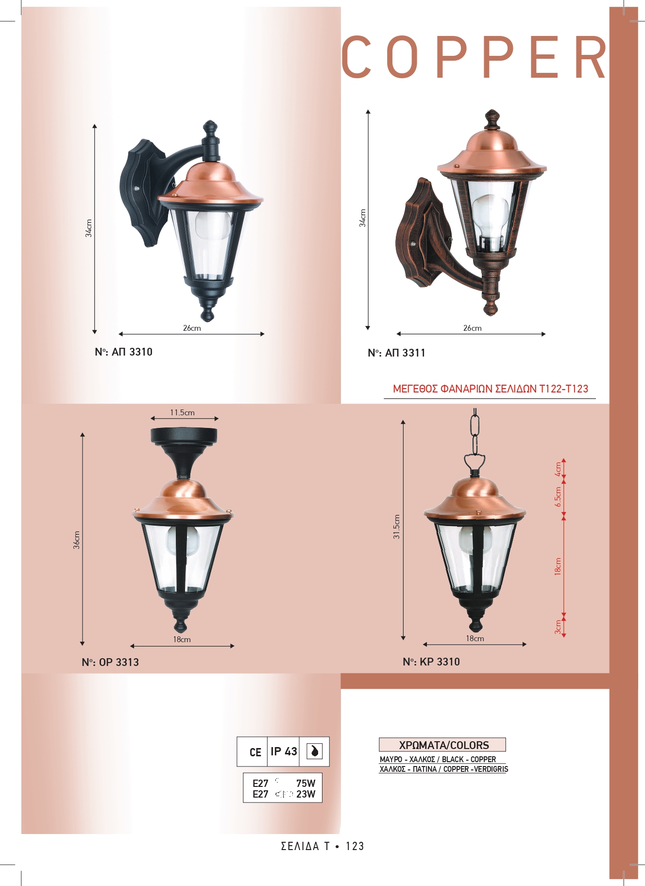 Φωτιστικά βαρέος τύπου μασίφ αλουμινίου. Η πρώτη ύλη είναι εισαγωγής διεθνούς Ιταλικού οίκου και στο εργαστήριο μας γίνεται η επεξεργασία, η απολάδωση, το φινίρισμα, το βάψιμο με ηλεκτροστατική βαφή, σε απόχρωση μαύρο ματ σαγρέ, ή αποχρώσεις πατίνας αντικέ (βλέπε χρωματολόγιο).
