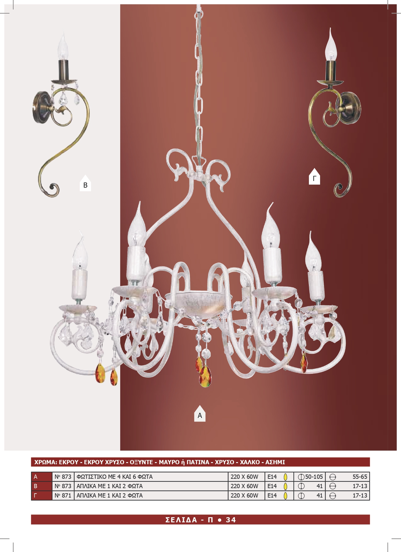 Δυνατότητα κατόπιν δικής σας επιλογής, κάποιας τροποποίησης, αλλαγής γυαλιών (σ' αυτή την περίπτωση ίσως αυξομειωθούν οι διαστάσεις (+ -), κατά 3% περίπου ή να αλλάξει ο τύπος λαμπτήρων Ε14 ή Ε27) με ή χωρίς ξύλο, ή φαγιάνς καθώς και χρώματος.
